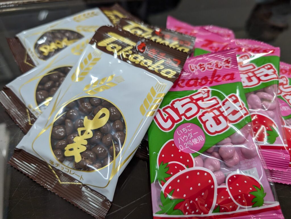 固形物にチョコレートをコーティングしたタイプの商品という点で、「むぎチョコ」は非常に長い歴史を持っており、ジャンルそのものの草分け的存在でもあります。